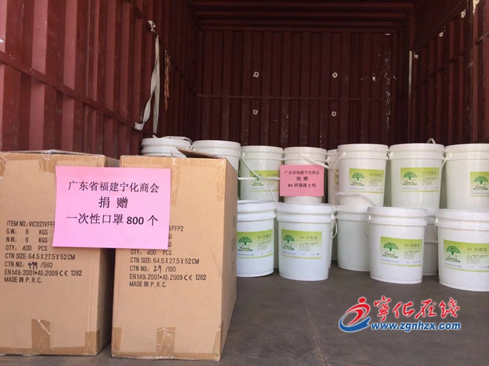泉州寧化商會副會長王開獎在獲悉捐贈信息后,向寧化捐贈2噸自己公司生產的“84”消毒液。