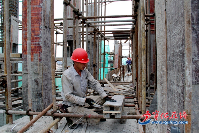 5月6日,在寧化縣江背濱江安置小區(二期)工程項目施工現場,工人正在進行斜屋面施工,加快推進項目建設。