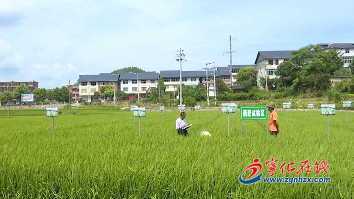 在河龍鄉下伊村的農田里,寧化縣河龍鄉農技站站長曾仁杰和他的同事們在稻田里觀察河龍貢米的種植情況,并記錄在冊。