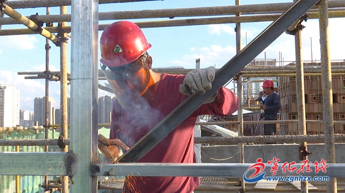 11月22日,在寧化城區(qū)江濱南路,沿街建筑物外墻腳手架工程已完成,工人們正在刷外墻界面劑,進(jìn)行膩?zhàn)哟虻住=瓰I南路客家風(fēng)格人居環(huán)境提升項(xiàng)目于11月上旬開(kāi)工建設(shè),預(yù)計(jì)2021年春節(jié)完工。
