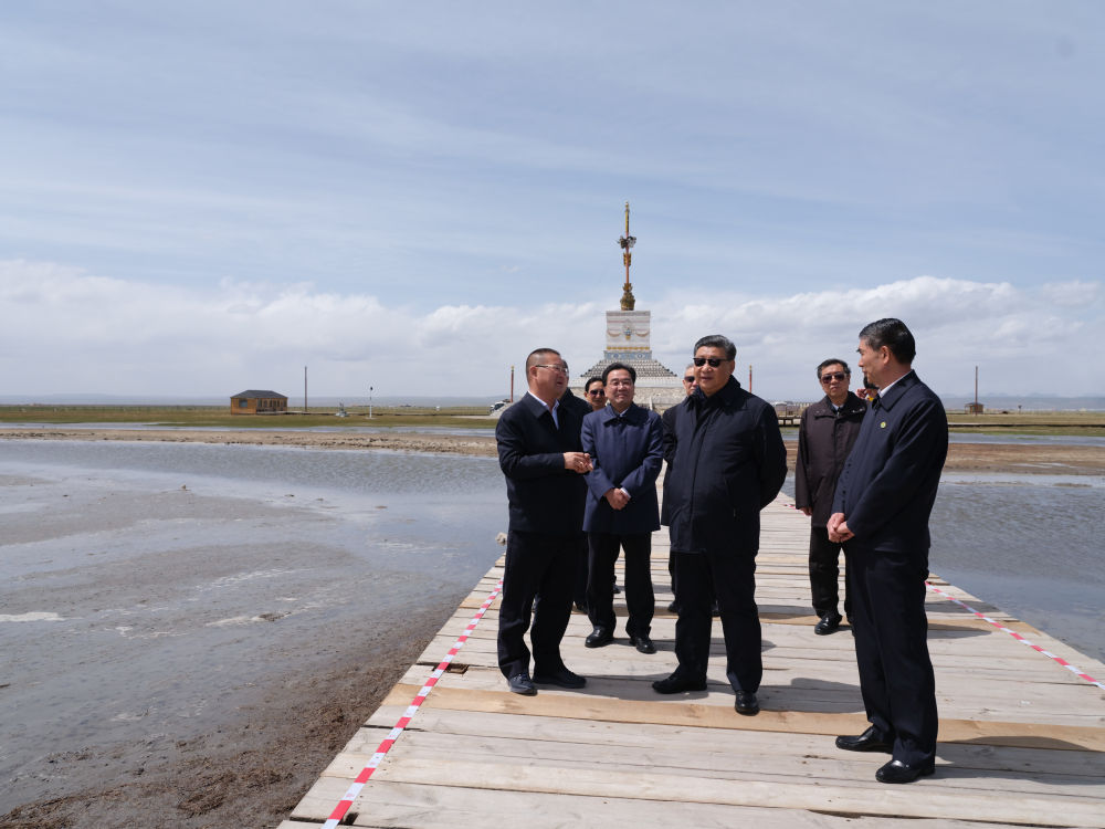 2021年6月8日下午,習近平在青海海北藏族自治州剛察縣青海湖仙女灣考察。