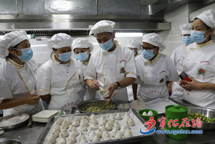 近日,寧化縣客家小吃第218期免費培訓班上,在福州創業的特聘老師江長順現場指導57名學員制作燒麥,并講解客家小吃的歷史淵源,探尋小吃制作技藝非遺文化。