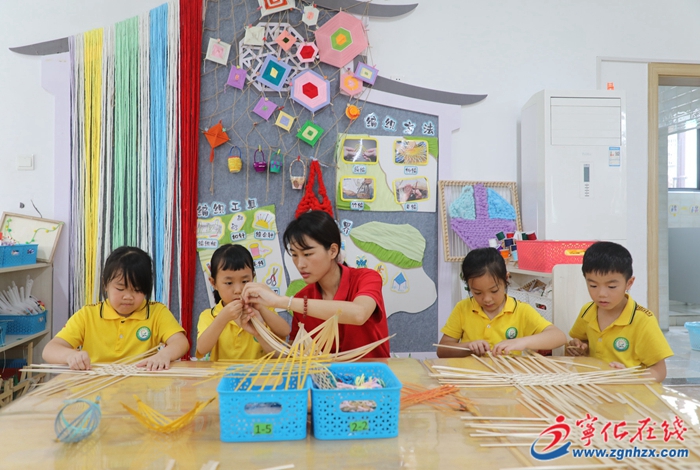 活動中,老師們指導孩子們學習傳統竹編技藝,教孩子們學習基本的編織技藝。孩子們動手用竹篾編織了小船和竹簍,深刻感受傳統手工藝的獨特魅力。隨后,老師們向孩子們介紹了客家美食的制作、客家藥草的辨別方法,并指導孩子們制作客家美食、體驗造紙術的傳統工藝。“通過參與客家文化活動,讓孩子們在學習和成長過程中了解客家文化,體驗客家的民俗風情,對孩子們的成長有很大幫助。”家長姜星華的一番話,表達了他對客家文化進校園的充分認可。