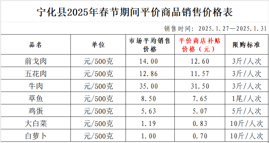 寧化縣城區民生副食品“價比三家”一覽表(2025.2.24)