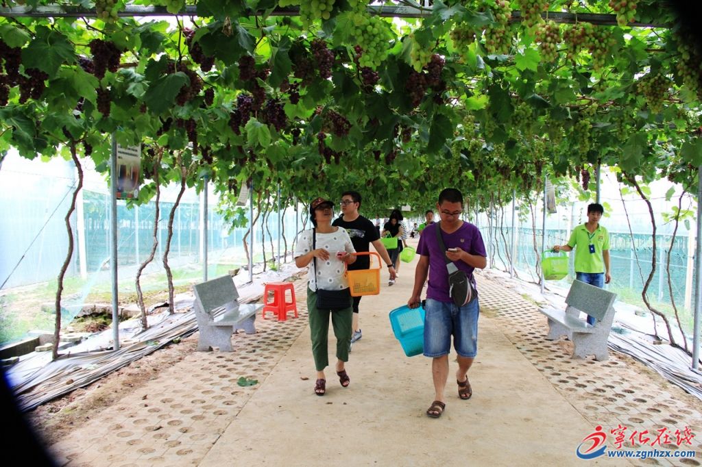 眼下正是葡萄最為甘甜的季節(jié)。7月11日,寧化在線、石壁現(xiàn)代農(nóng)業(yè)觀光園聯(lián)合舉辦一年一度的網(wǎng)友采摘提子活動在觀光園舉行,20多名翠江論壇網(wǎng)友攜家?guī)Э冢w驗由采摘葡萄帶來的樂趣。