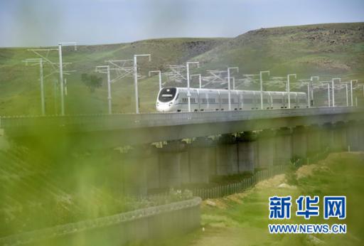 2017年8月3日上午10時(shí)18分,內(nèi)蒙古首列高鐵D6980次列車伴隨著嘹亮的汽笛聲,駛出呼和浩特東火車站,以250公里的時(shí)速駛向?yàn)跆m察布站,內(nèi)蒙古自此正式邁進(jìn)高鐵時(shí)代。(圖片來源:新華社)