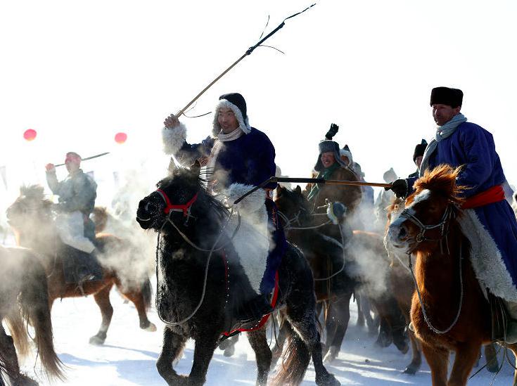 內(nèi)蒙古陳巴爾虎旗氣勢恢宏的馬隊(duì)表演。(圖片來源:新華社)