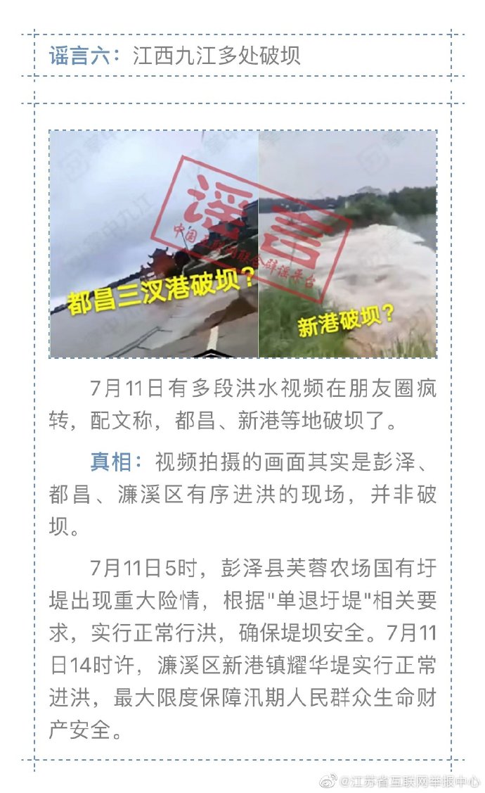 入夏以來,我國南方進入主汛期,部分地區遭遇今年以來最強降雨過程,中央氣象臺接連發布暴雨橙色預警。但災難面前,謠言的傳播影響正常的防汛抗災秩序。江蘇省互聯網舉報中心16日盤點了以下幾則汛期謠言,望廣大民眾勿恐慌,不信謠、不傳謠 !