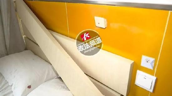 99連鎖旅館的工作人員介紹,這種木板,在每個(gè)床頭有三塊,每塊長(zhǎng)約1.5米,掛在床頭是為了起到裝飾作用。