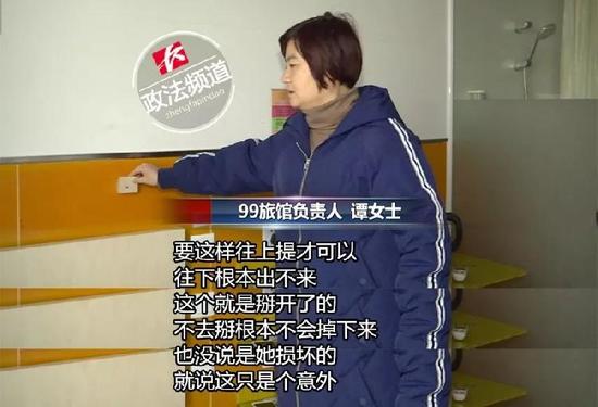 記者發(fā)現(xiàn),這塊裝飾木板用小拇指就能移動(dòng),這樣的設(shè)計(jì)顯然存在安全隱患。由于協(xié)商難達(dá)一致,1月5日,夏女士和朋友再次來到了這家酒店。