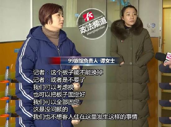 為進(jìn)一步核實(shí)情況,記者來到了旅館的其他房間,發(fā)現(xiàn)木板的松動(dòng)并非個(gè)別現(xiàn)象,幾乎個(gè)個(gè)房間都有,只是松動(dòng)的程度不一。對(duì)于這種倒鉤式裝飾木板存在的隱患,酒店方承諾,將全面翻修。
