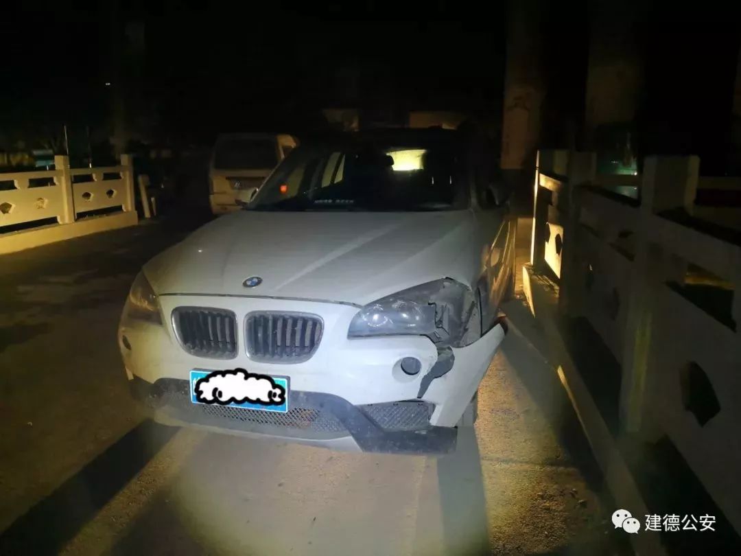 事情要追溯到2月26日晚上11時許,建德交警大隊楊村橋中隊接到在楊村橋王謝村高速橋下發生交通事故的指令后,值班民警迅速趕到現場,見到一輛白色的寶馬撞河道護欄的事故。