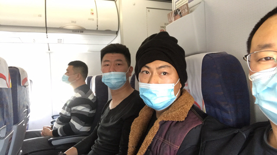 大慶市公安局追逃刑警將楊通(左三)由河南押解回黑龍江途中。受訪者供圖