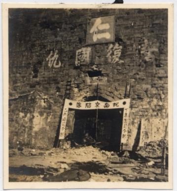 相冊中日軍在南京中華門懸掛“祝南京陷落”等標語的照片。 受訪單位供圖