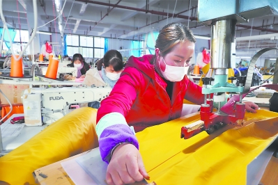 ?2月23日,在周寧縣興達勞保服裝有限公司,員工趕制發往意大利的防雨衣。該公司2月7日取得復工復產許可,現日產600多套防雨衣。 林輝 黃起青 攝