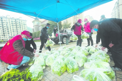 光澤縣黨員志愿者將蔬菜運到城內小區的愛心蔬菜平價自助銷售點。福建日報記者 林輝 通訊員 武少龍 攝