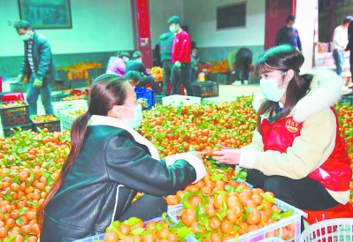 閩清縣黨員志愿者幫助當地橘農剪枝、分類、裝果。 福建日報 吳旭濤 攝