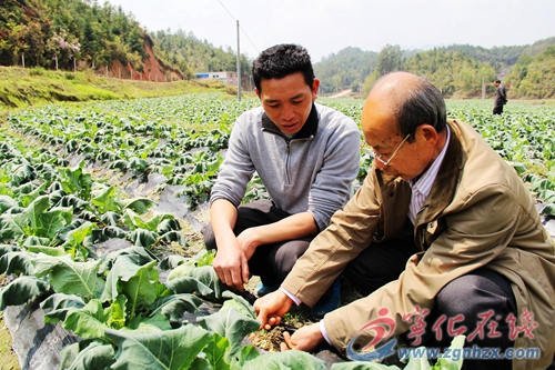 ??? 4月4日上午,曹仁東來到花菜田間,一坵田一坵田走過去。“小溫,你的花菜長勢不均勻,要抓緊放施速效肥,進行根外噴施營養素。”