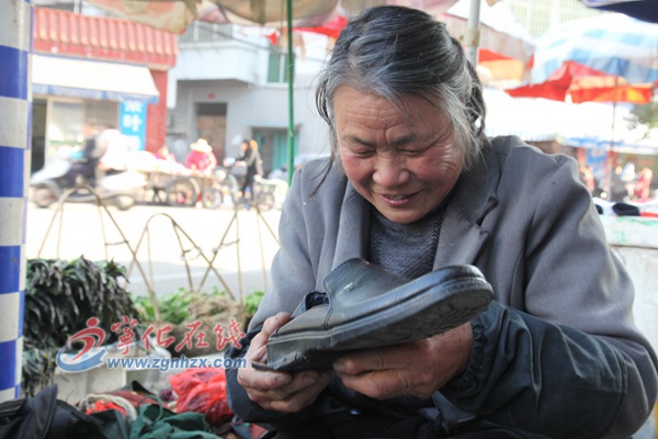 修鞋是個技術活,釘、修、補、換、縫、接、粘、改等技術,樣樣都要掌握得相當嫻熟。筆者初見陳碧蓮時,她正低著頭修鞋,臉上的表情很專注,腿上鋪著一塊圍布,左手拿著鞋子,右手靈活地在鞋子上穿針引線。不一會兒,鞋子就上完線了,用剪刀小心地剪去多余的線頭,然后仔細檢查鞋子一番,再在上線處加一層膠水,確定沒有問題后,才把鞋子遞給顧客。她說,加多一層膠水是為了讓鞋子不進水,更耐穿,女鞋上線一般要上30針左右,男鞋一般40針左右。“別看這活兒不起眼,要想干長久,一定要保證質(zhì)量,這樣人家才會經(jīng)常找你修鞋。特別是冬天,天氣太冷,膠皮不好往鞋跟上粘,我就帶回家里加溫,這樣才能粘牢。”陳碧蓮一臉認真。