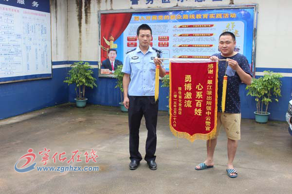 ??? “張警官,我們終于找到你了!多虧了你,不然我們店里10多萬的貨就被洪水沖走了。” 5月28日,寧化縣城區(qū)北大街雅佳麗化妝品店的店主曾樹生來到翠江派出所,將一面“心系百姓,勇博激流”的錦旗送給民警張中云。