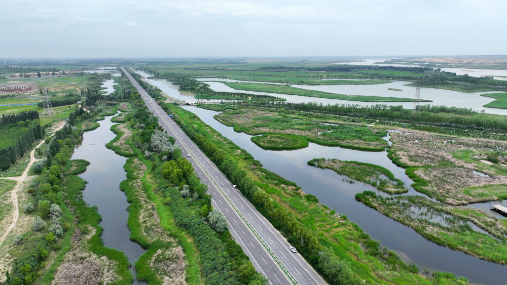 ??這是2024年6月13日拍攝的黃河寧夏段濱河大道(無人機照片)。近年來,寧夏努力建設黃河流域生態保護和高質量發展先行區,全力打好黃河保護持久戰。新華社記者 王鵬 攝