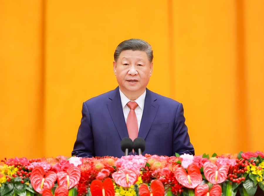 1月27日,中共中央、國務院在北京人民大會堂舉行2025年春節團拜會。中共中央總書記、國家主席、中央軍委主席習近平發表講話。新華社記者 李學仁 攝