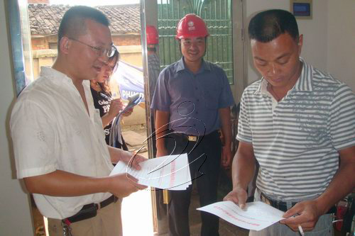 828上午,寧化供電公司電力設施保護工作小組與寧化公證處有關人員,來到翠江鎮新建二村張美富、朱海金等6戶在電力線路底下違章搭建村民家,送達安全隱患整改通知書,并對整個過程請縣公證處進行現場公證。這是寧化供電公司針對規避安全責任風險探索出的一種新途徑。