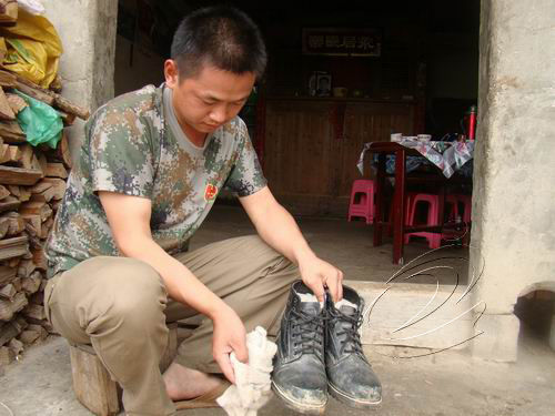 在整理父親的遺物時(shí),賴東華看到了床底的一雙軍靴,這是他去年回家探親時(shí)買的。上次車禍后,父親的腳怕受涼,賴東華在連隊(duì)的軍品店給父親買了這雙保暖軍靴。母親曹玉清說:“他父親最喜歡這雙靴子了,每次走親戚,他都穿著,還不忘告訴別人,這是他部隊(duì)的兒子買的。”