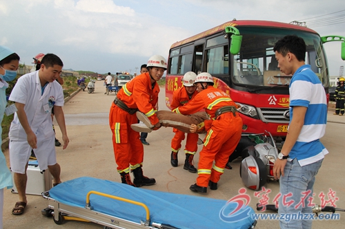 6月26日,寧化縣安監(jiān)局聯(lián)合縣交通局、衛(wèi)生局、交管大隊、消防大隊、縣農(nóng)業(yè)局農(nóng)機辦等部門,在城南工業(yè)園開展交通事故應急救援演練。