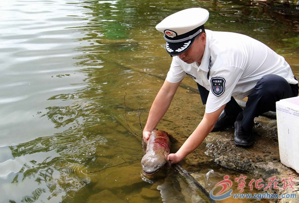 ??? 9月24日,寧化縣漁政大隊執法人員將一條體長60公分,重3.25公斤的野生娃娃魚放歸大自然,這是寧化縣漁政大隊成立以來首次發現并放生野生娃娃魚。