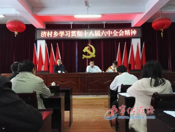 ??? 會后,濟村鄉各黨支部立即組織召開黨員會議,將十八屆六中全會和省市縣鄉領導講話精神傳達給全體黨員,在全鄉范圍內掀起學習貫徹十八屆六中全會精神的高潮。(巫錫鵬)