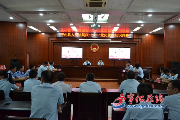 ? ? 本報訊 6月29日,在“七一”來臨之際,寧化縣法院舉行黨史知識競賽,12名來自各個支部的成員組成四個代表隊參加了競賽。
