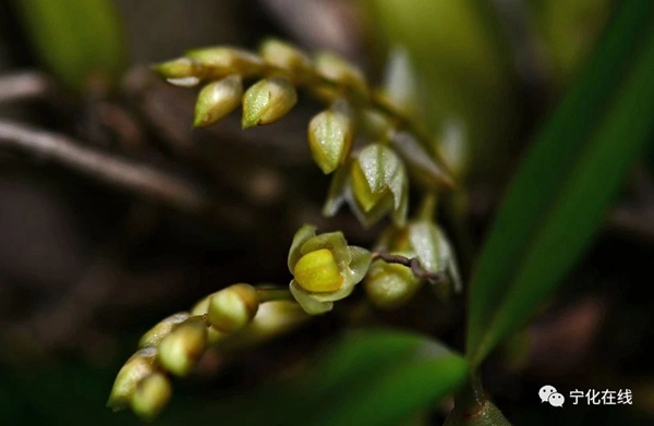 寧化的獨蒜蘭長在丹霞地貌的矮灌木林下的巖石表面,共生于苔蘚中。每年的三月前后開花,花期二十余天。花香淡雅幽長。