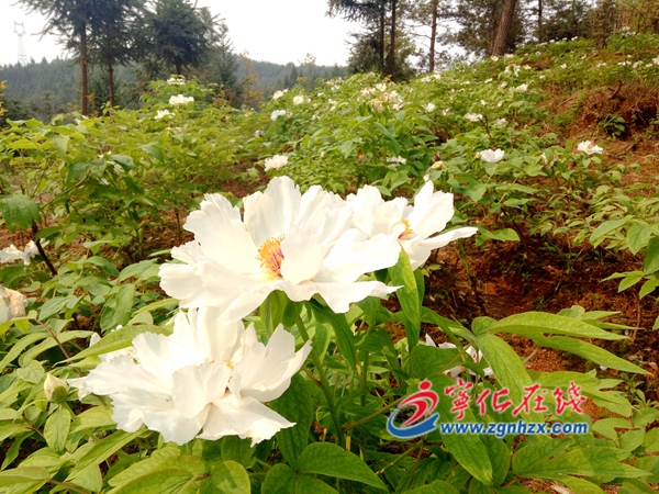 ? ? 2016年,林業(yè)局從安徽亳州引進(jìn)油用牡丹試種。經(jīng)過(guò)3年的精心培育,一朵朵牡丹爭(zhēng)相開(kāi)放。一簇簇白色的花朵,灑落上滴滴晶瑩剔透的水珠更顯嬌艷。