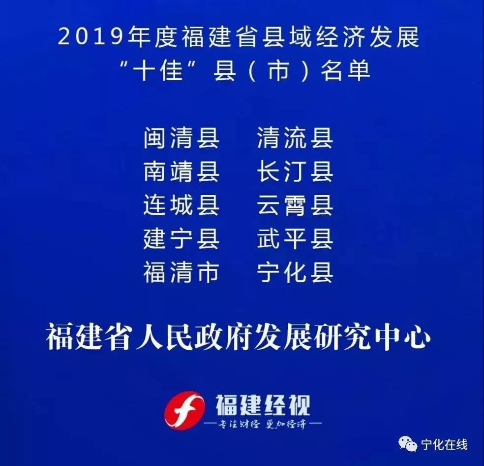 11月30日,2019年度福建省縣域經濟實力“十強”、經濟發展“十佳”縣(市)評價名單發布,寧化縣榜上有名!
