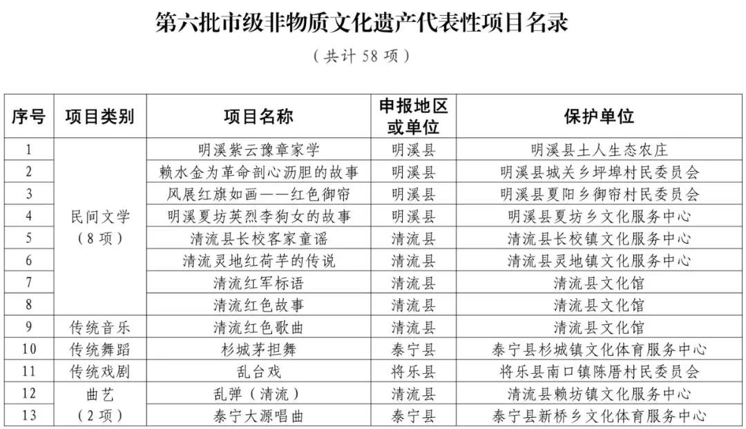 3月9日,三明市公布由市文化和旅游局組織專家評(píng)審后提出的第六批市級(jí)非物質(zhì)文化遺產(chǎn)代表性項(xiàng)目名錄(共計(jì)58項(xiàng)),一起來看看寧化有哪些項(xiàng)目入選啦!