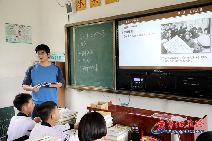 “土地改革的完成,徹底摧毀了我國兩千多年的封建土地制度,農民翻身成了土地的主人……”5月18日,在寧化泉上中學,青年教師李鴻瑋站在講臺前,正通過課件聲情并茂地給八年級學生上歷史課。