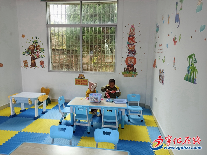 12月29日,在寧化縣淮土鎮竹園村兒童之家,墻上精美的卡通圖案充滿童趣,室內擺放著種類豐富的書籍、各式各樣的益智玩具和手工材料。課桌旁,小朋友們正聚精會神地擺弄著手中的魔方積木。