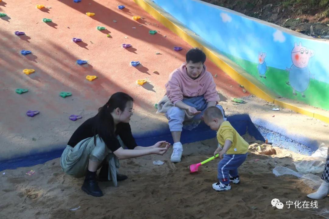近日,寧化縣市民張先生帶著孩子在城區北山公園兒童微樂園玩耍,臉上洋溢著幸福的笑容。