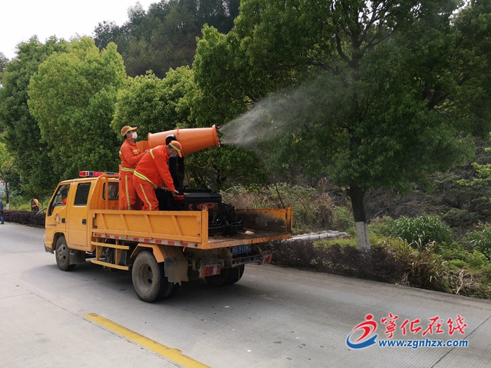 4月2日,寧化翠江公路站職工在國道356線開展國省道病蟲害防治工作,進行噴灑藥水作業。