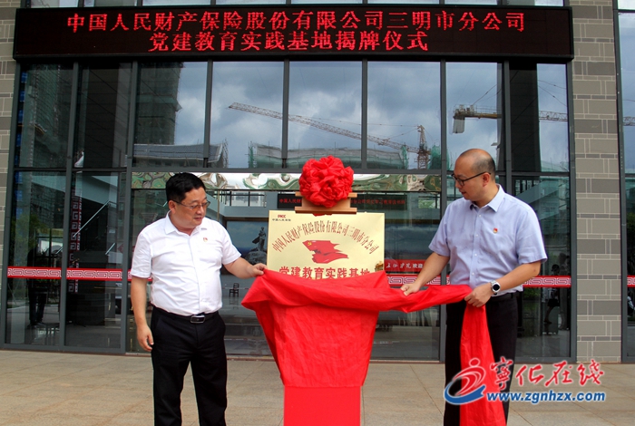 6月18日,中國人民財產保險股份有限公司三明市分公司黨建教育實踐基地在寧化長征學院揭牌成立。中國人民財產保險股份有限公司三明分公司黨委書記、總經理丁建湖,副縣長何翔出席揭牌儀式并揭牌。