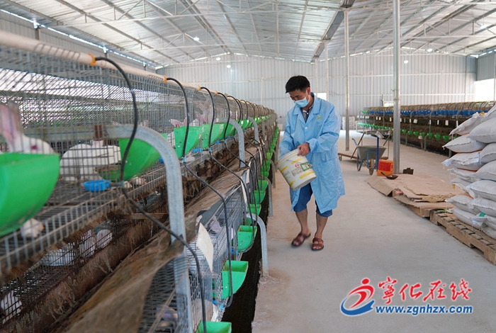 8月10日,走進下洋村黃洪華的肉兔養殖基地,只見一排排整齊的兔籠里,一只只可愛的兔子活蹦亂跳,廠長黃洪華正在給兔子喂食。