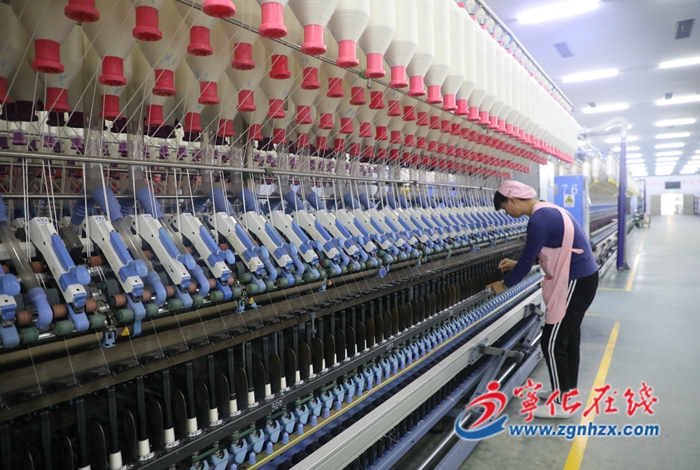 公司自2013年成立以來,已投資8億元,建設(shè)年產(chǎn)8萬枚紗錠紡紗及年產(chǎn)4.8萬噸無紡布生產(chǎn)項目,年產(chǎn)8萬枚紗錠紡紗生產(chǎn)項目于2017年正式投產(chǎn)。2021年,該公司總產(chǎn)量8400多噸,產(chǎn)值超過1億元。臨近春節(jié),該公司加大生產(chǎn)力度,不斷提高生產(chǎn)效益,進一步滿足客戶和市場需求。圖為工人正在細紗車間巡回檢查機器運轉(zhuǎn)狀況。