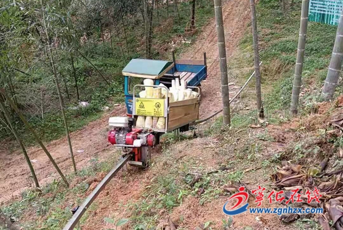 竹山交通不便,如何將竹筍搬下山,成為困擾竹農多年的老大難。近年來,安樂鎮黨委圍繞“黨建+項目”模式,投入80萬元,新建5.2公里長的竹山軌道,通過簡易“小火車”將竹筍運下山。“每年采挖的春筍量大,不易貯存,運輸不及時就白白爛掉了。”吳育林感慨道,“小火車”結構簡單、安裝方便,不破壞原有地貌,適用于山地運輸。