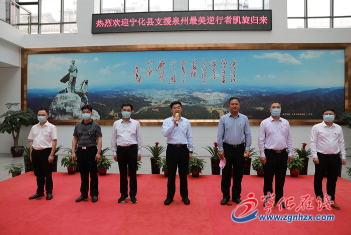 王勝文代表縣委、縣政府和寧化人民對今天歸來的勇士們致以崇高的敬意,也向全縣的醫務工作者表示衷心的問候。他說,面對泉州突發的疫情,各位醫務人員遵從黨的號召,主動請纓逆向前行,在為期一個月的時間內堅持戰斗在一線,圓滿出色的完成了援助任務,得到了泉州人民的信任和贊揚也展現了寧化兒女的精神風貌和大愛精神。希望大家好好休整,以更加良好的精神狀態,回到工作崗位,一起守護好、鞏固好來之不易的抗疫成果。