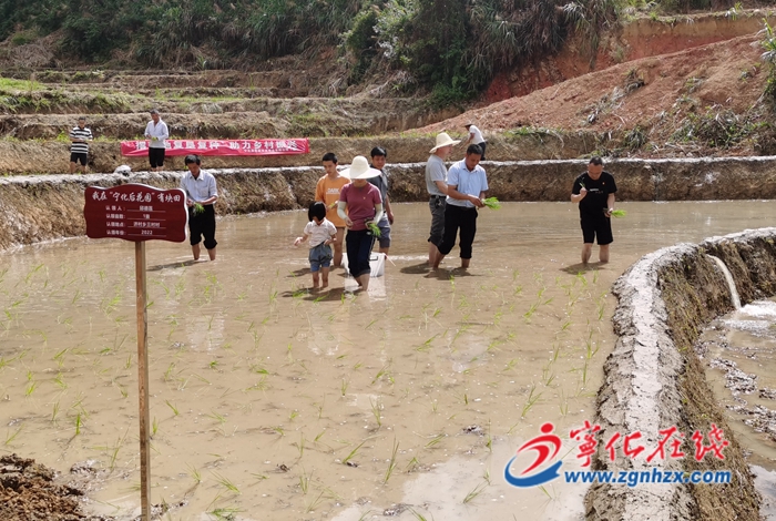 6月30日,濟村鄉(xiāng)開展“整治撂荒地 收獲希望田”七一主題黨日活動,鄉(xiāng)全體機關(guān)黨員干部認(rèn)領(lǐng)各自管護(hù)整治的田地,并進(jìn)行拋秧種植。