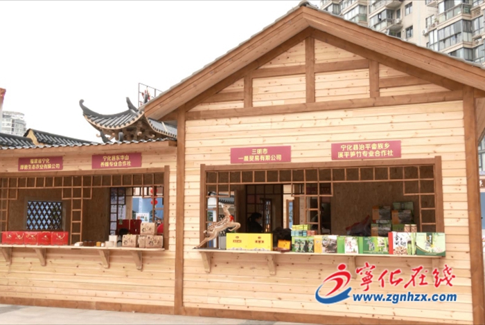 “寧化展銷館是結合客家鄉村四合院的結構,再采用木質環保的材料進行設計、施工,讓大家更了解寧化特產的同時,還能夠了解到寧化的客家建筑文化。”三明市豪亭園林景觀工程有限公司負責人溫志峰介紹。