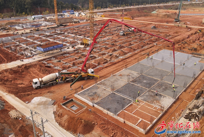 近日,在寧化凱爾邁文化創意產業園建設項目施工現場,記者看到工人們正在進行基礎地梁澆筑等施工,現場一派繁忙景象。