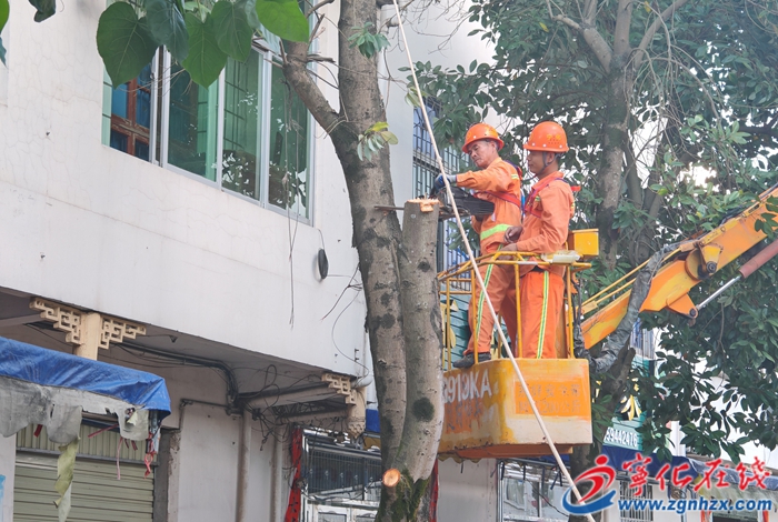 當天下午公路分中心立即組織城郊公路站職工駕駛高空作業車前往事發地點(省道221線76K+900),規范作業路段安全作業布控,做好登高作業人員安全防護,從高及低,依次分段裁剪、清理,經過近兩小時的忙碌,安全隱患得以消除。