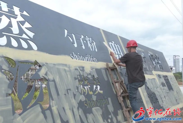 走進示范線(城郊段)人居環境建設項目施工現場,工人們正在緊張而有序地進行雕塑上漆、土地平整工作。